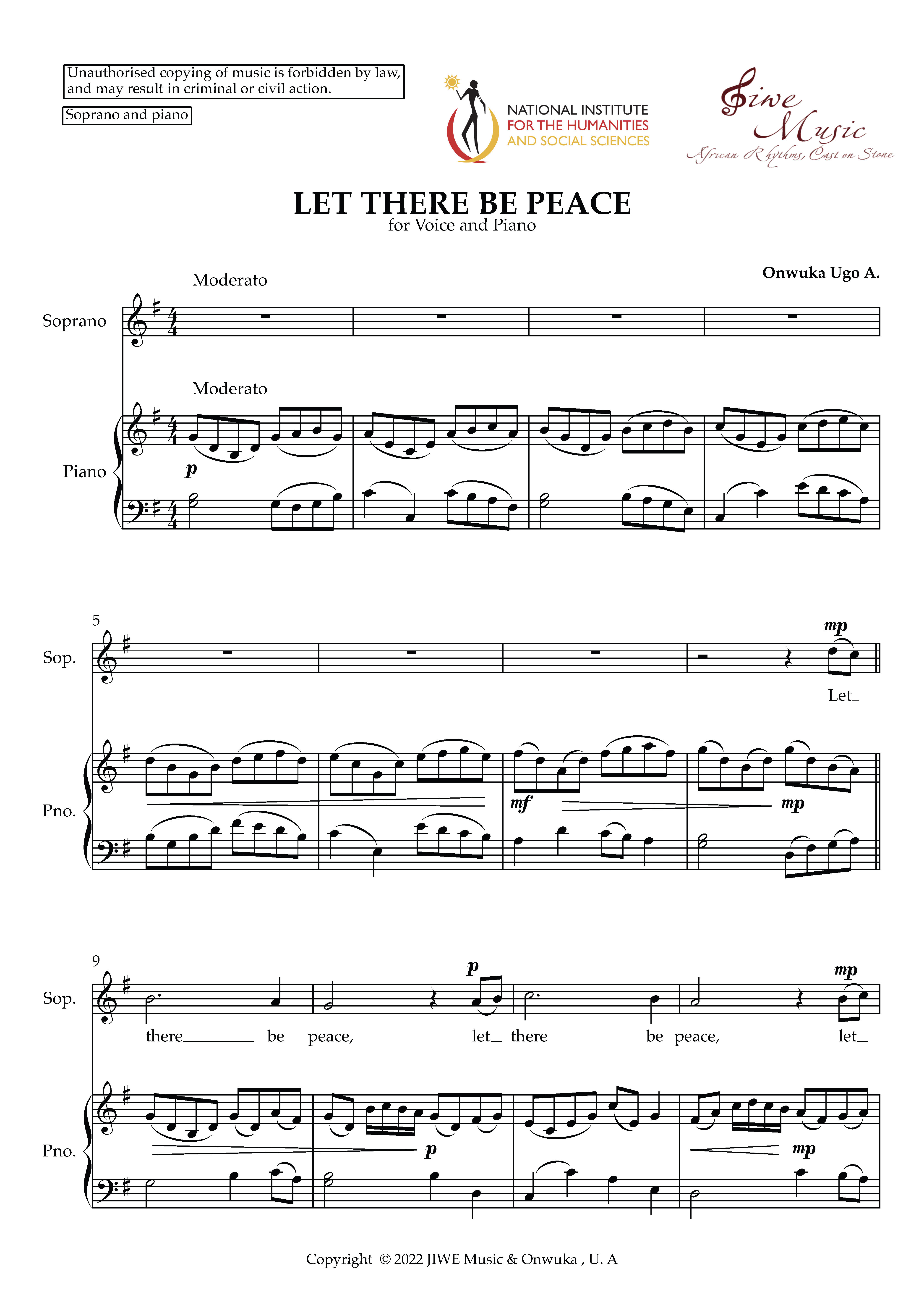 Dr Ugo Onwuka wrote this composition as part of the NIHSS online orchestration program hosted by Jiwe Music (an online African Music library). The main convenor for the orchestration course was Dr Andile Khumalo. Jiwe Music is a non-profit organization seeking to preserve and make African music accessible to the African continent and beyond. It accepts contributions from all genres of music. This composition falls under the category of "Contemporary Art songs".