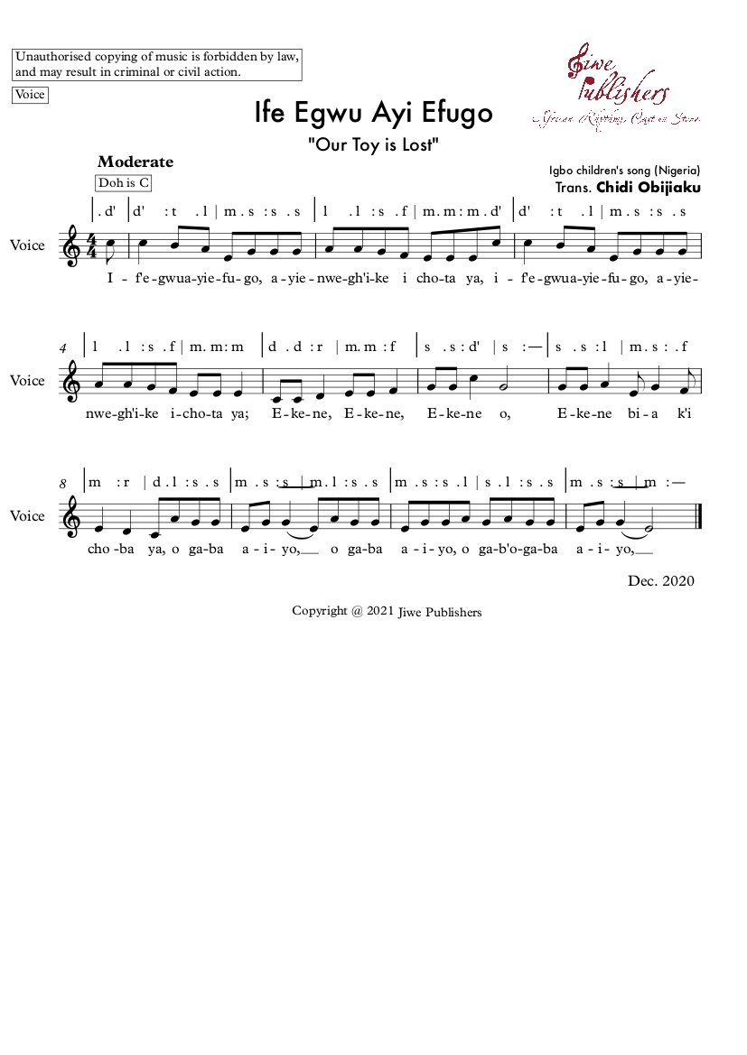 Ife Egwu anyi efugo - "Our Toy is lost" (Igbo Children's play song from Southeast of Nigeria)