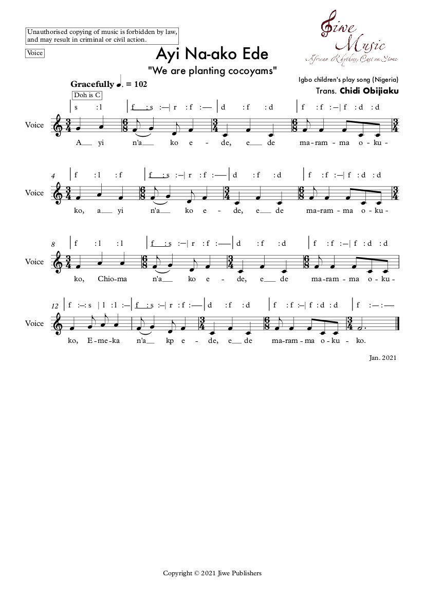 Ayin na-ako ede - "We are planting cocoyams" (Childrens play song from South east of Nigeria)